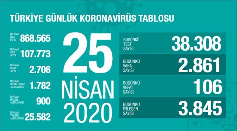 Koronavirüsden İyileşen Hasta Sayısı 25 bin 582